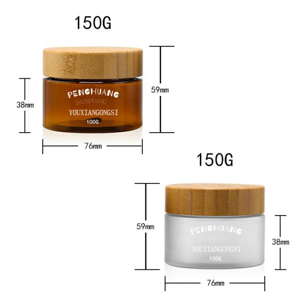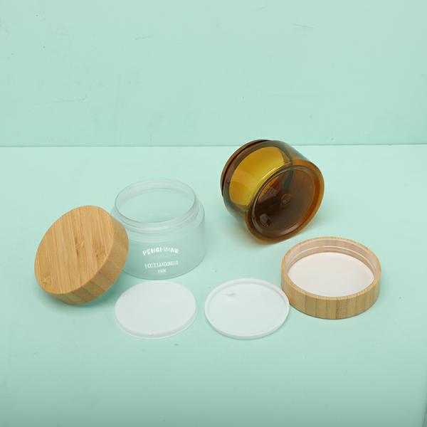 Eco - Friendly Wide Mouth Cream Plastic Jar 150ml Clear Amber With Bamboo Cap Images |